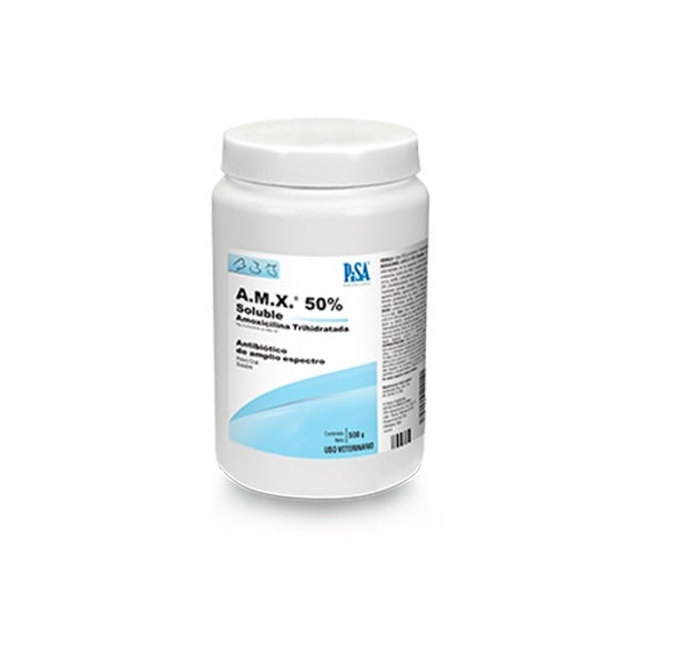 A.M.X. 50% Soluble: Se usa para la prevención y tratamiento de enfermedades, en las especies indicadas, causadas por gérmenes sensibles a la amoxicilina, como son: