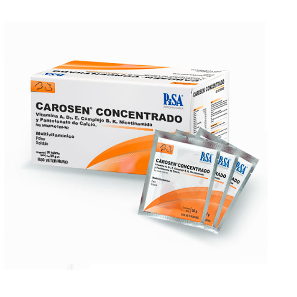 Carosen concentrado está formulado para corregir las deficiencias de las vitaminas que intervienen en el metabolismo energético intermedio y en la respuesta inmune de los cerdos y las aves (reproductoras, de postura y pollo de engorda) que se presentan durante los periodos de estrés, enfermedad y/o convalecencia; acortando así los periodos de recuperación.