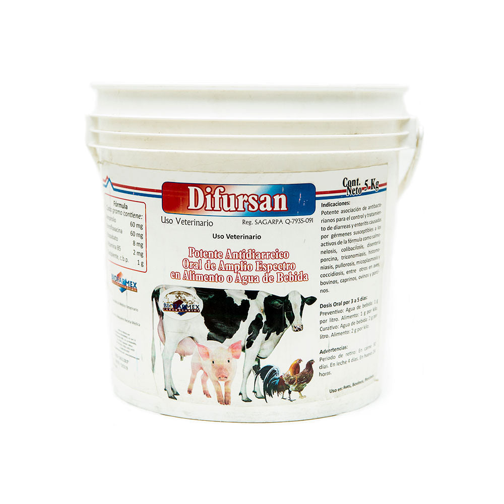 Potente antidiarreico oral de amplio espectro en alimento o agua de bebida.