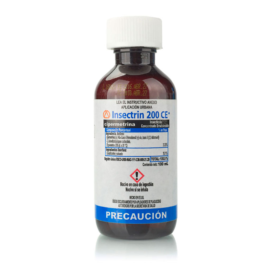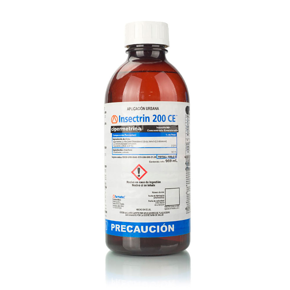Insecticida compuesto por un piretroide sintético altamente eficaz contra los ectoparásitos de las aves domésticas como son los Corucos, e insectos presentes en las instalaciones de las granjas como: Moscas, cucarachas, hormigas, alacranes, etc. Contiene 340 g de piretroide por cada 1000 cc de Insectrín.