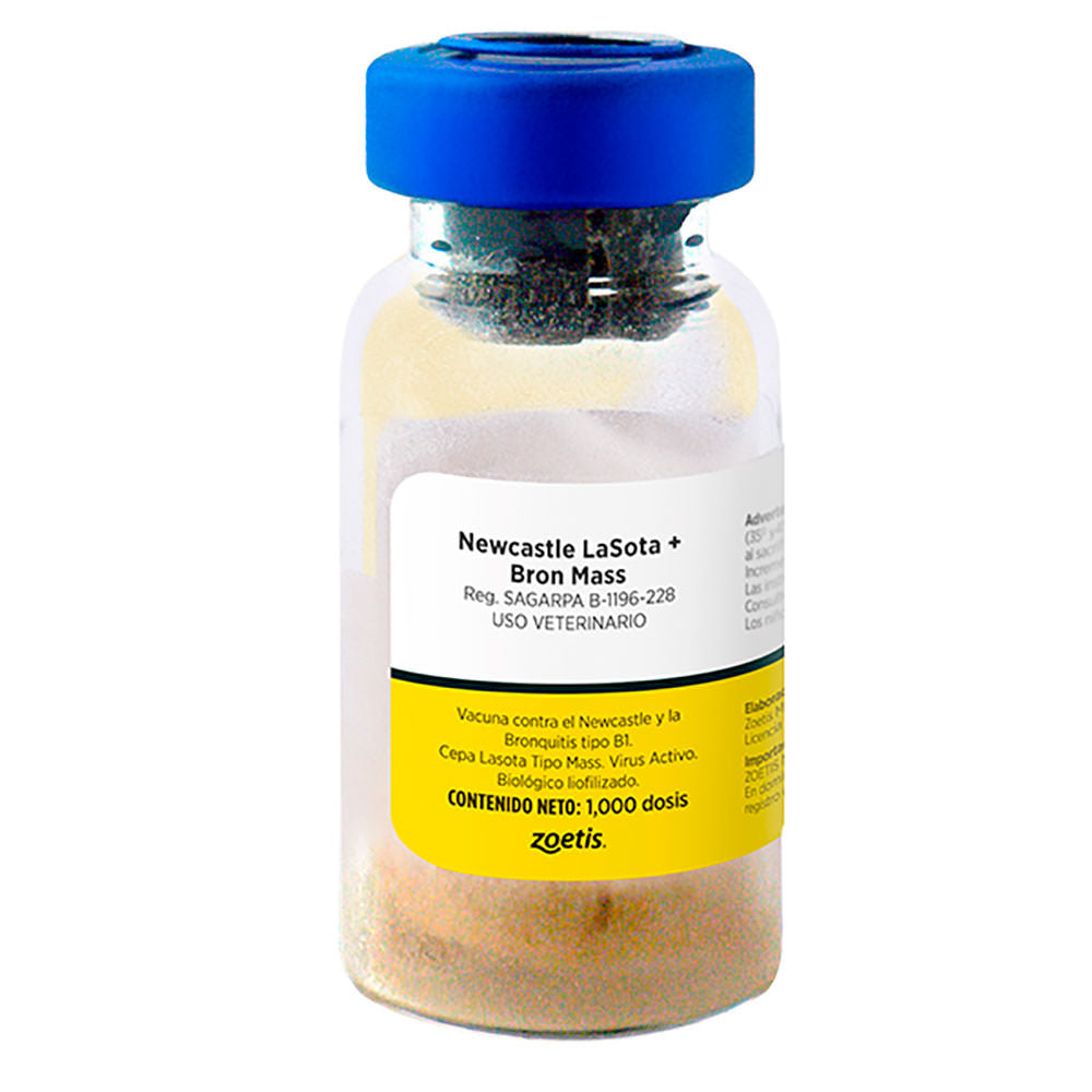 Para la prevención de la Enfermedad de Newcastle + bronquitis en gallos, gallinas progenitoras, reproductoras, de postura, pollo de engorda y todo tipo de aves de corral.