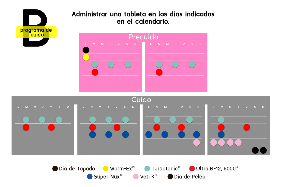 Adquiere con precio de promoción el programa de cuido B para gallos con productos 100% originales de laboratorios VETINOVA, el paquete B de cuido incluye: