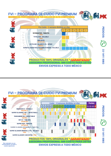 Adquiere con precio de promoción el programa de Pre cuido y Cuido para gallos con productos 100% originales armado por Farmacia Veterinaria Independencia, el paquete incluye: