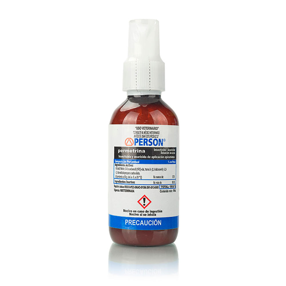 Person Plus contiene un piretroide sinergizado de aplicación dérmica dorsal, con un amplio espectro contra ectoparásitos de los bovinos como: mosca del cuerno, mosca de establo, garrapatas y piojos. Contiene Permetrina 6%.