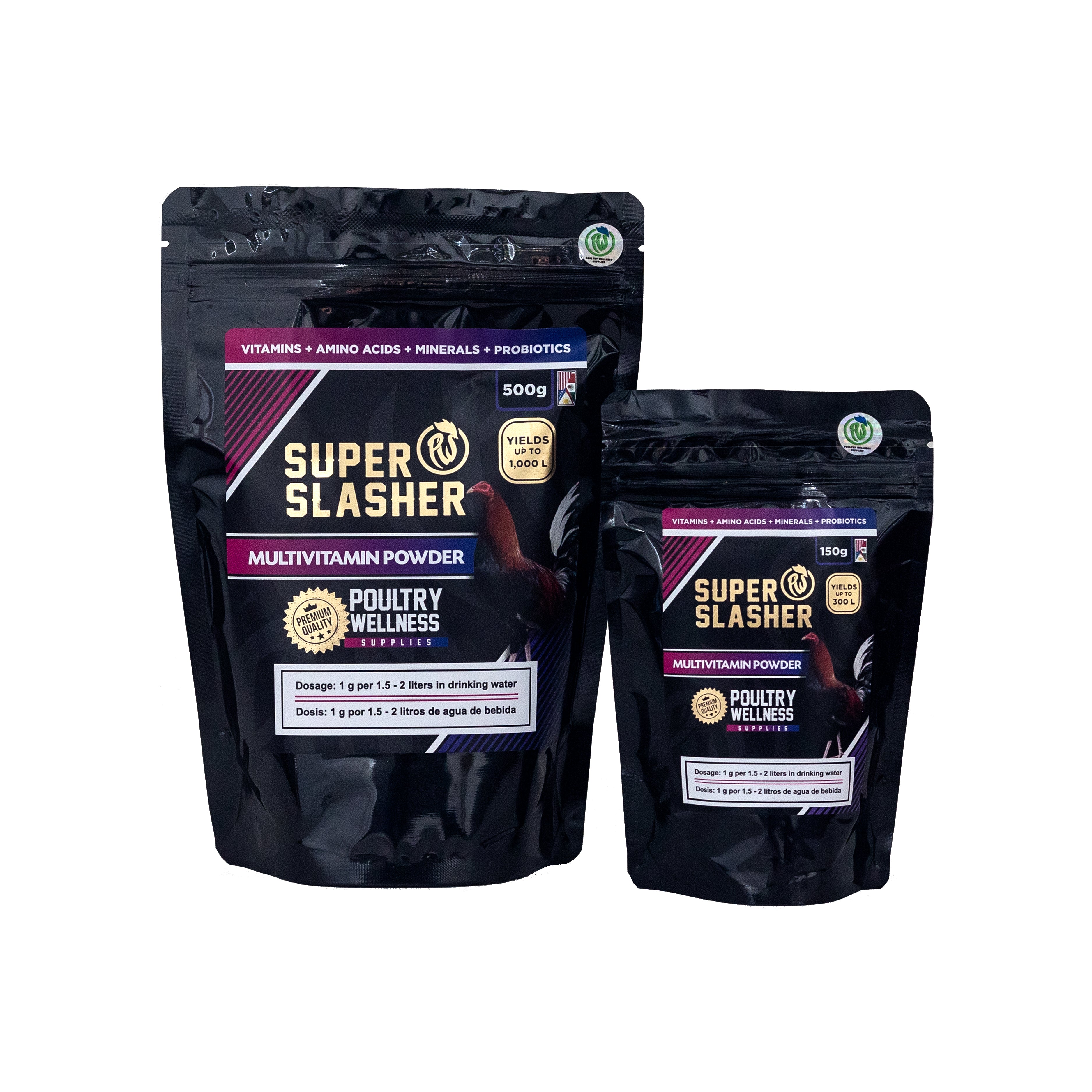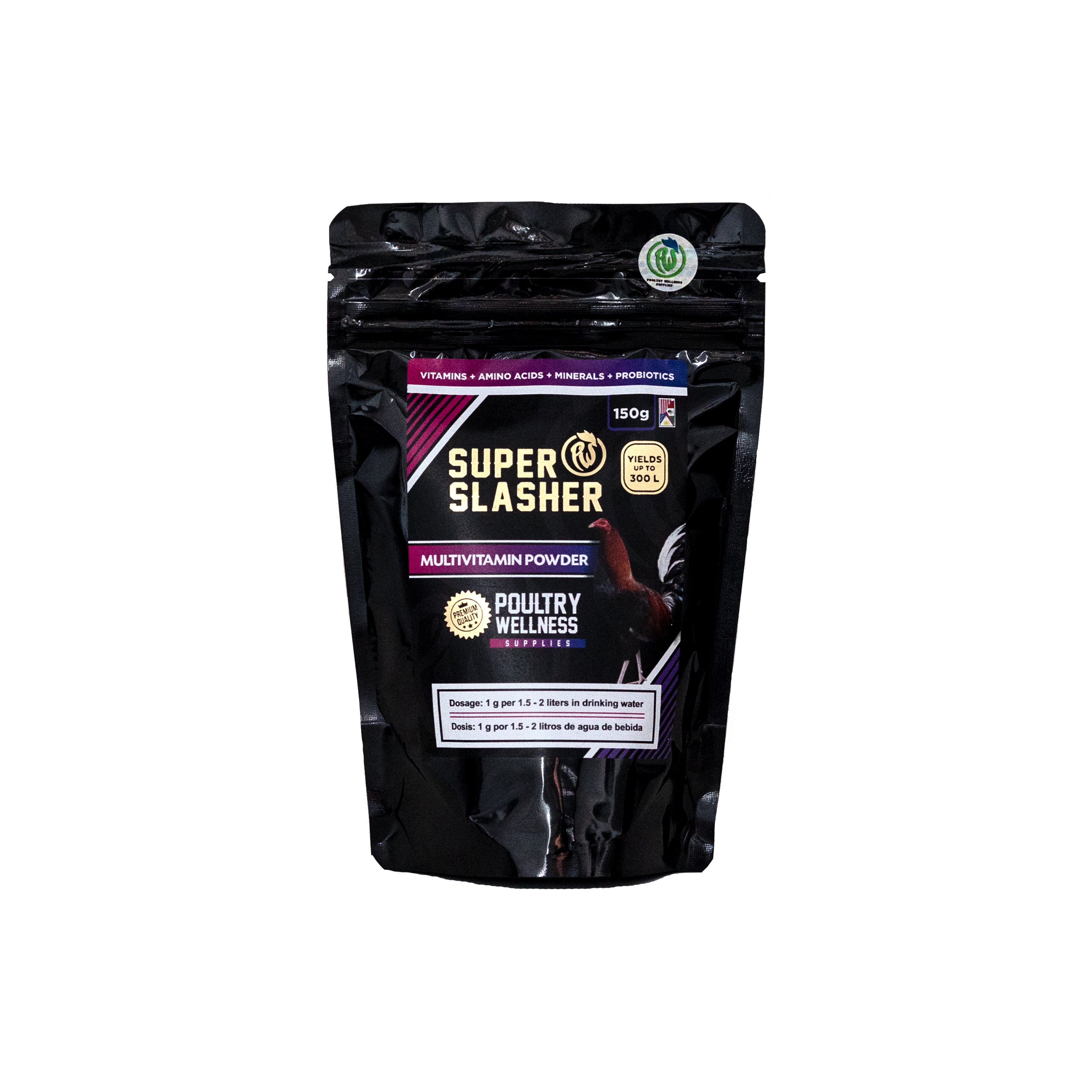 PWS - Poultry Wellness Supplies, presenta un producto indispensable en cualquier gallera, El Super Slasher Multivitamin Powder, una súper combinación de Vitaminas, aminoácidos, probióticos y minerales solubles en agua esenciales para mantenimiento y pre cuido de gallos, pollada, gallinas, época de pelecha, animales convalecientes, etc.
