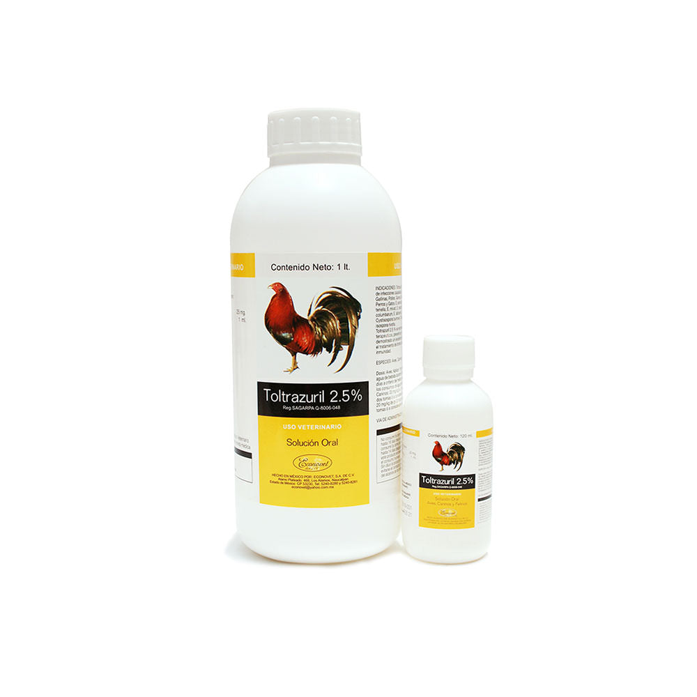 Efectivo contra coccidias, pertenece al grupo de las triazinonas simétricas. Actúa sobre los mitosis de todos los estadios. Tiene un alto margen de seguridad, no altera el consumo de agua ni alimento.