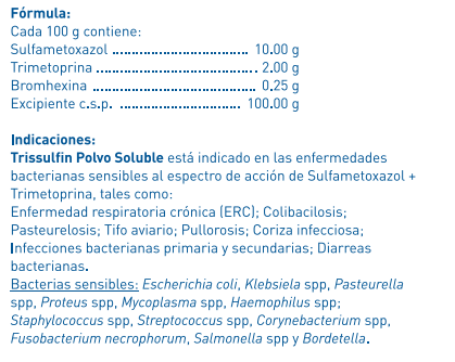 Aves: 1 gramo por 1 litro de agua de bebida durante 7 días seguidos.